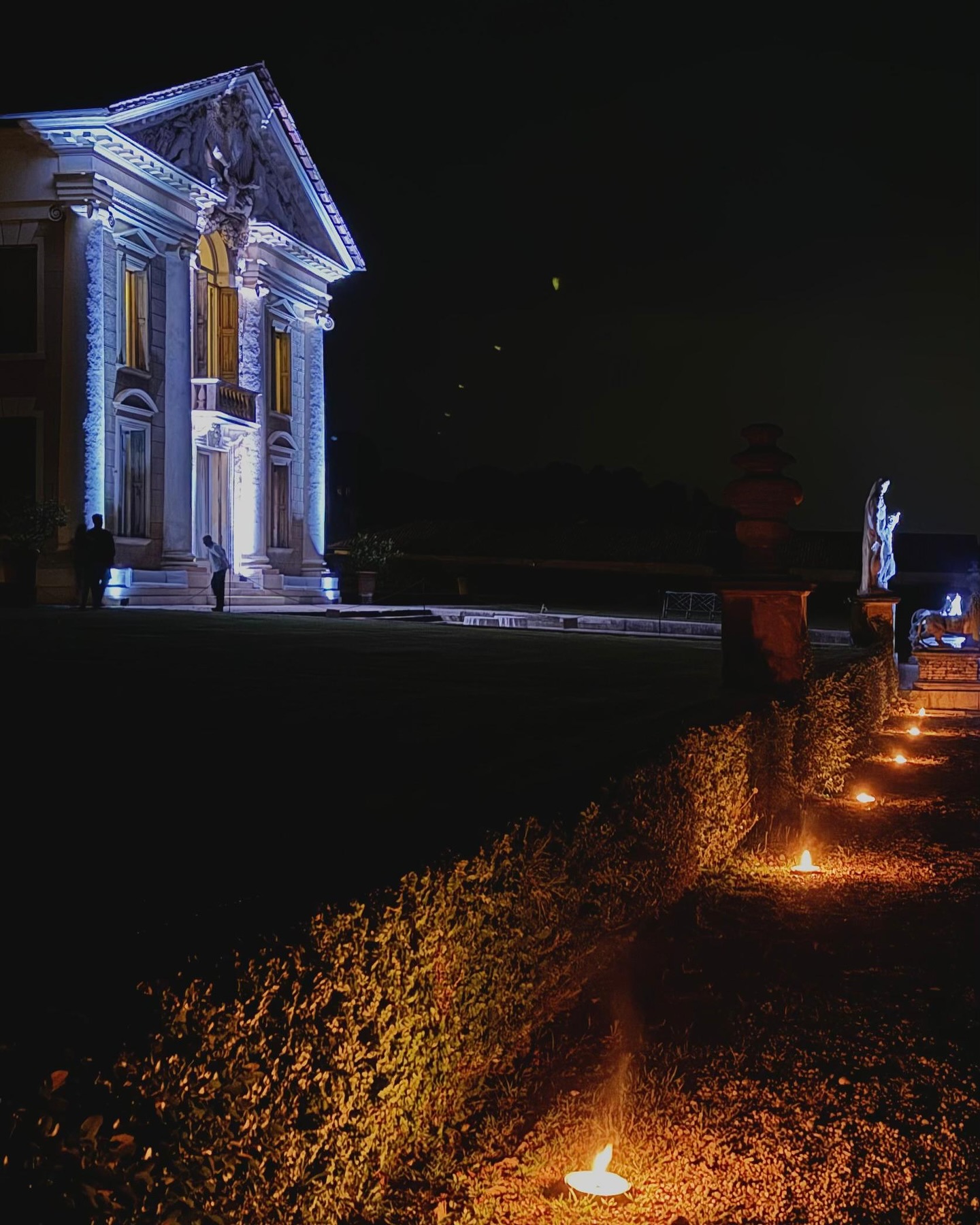 Quattro portate raffinate al chiaro di Luna, dove ogni piatto sarà sapientemente preparato e abbinato ai vini produzione della Cantina Storica della Villa di Maser.